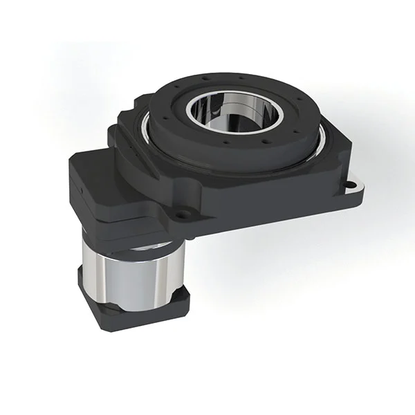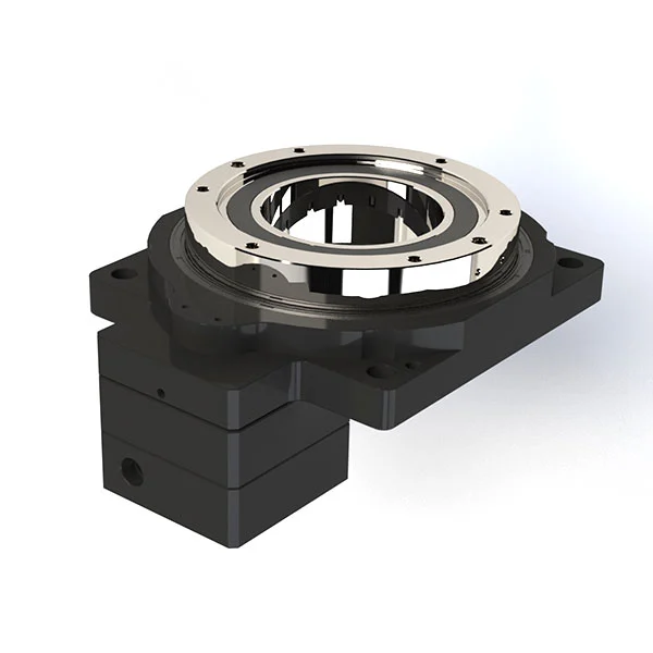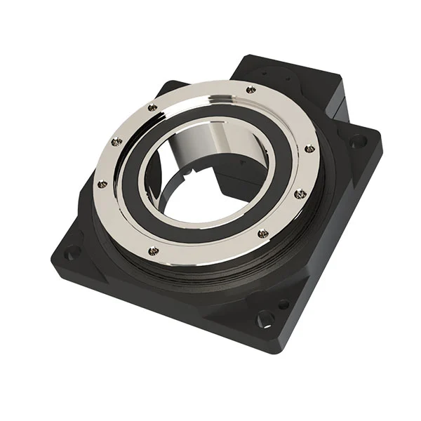 Platforma Hollow Rotary wykorzystuje bardzo precyzyjną strukturę przekładni i łożyska promieniowe w celu poprawy momentu obrotowego i sztywności, umożliwiając bardziej stabilne łożysko obciążenia. Po sparowaniu z silnikiem serwo lub silnikiem krokowym może wykonywać dowolny podział kąta. Dotyczy to nie tylko kontroli cyfr, których indeksów nie może osiągnąć, ale ma również dokładność pozycjonowania porównywalną z dokładnością do bezpośredniego napędu i może osiągnąć pozycjonowanie obciążeń bezwładnościowych w krótkim czasie.